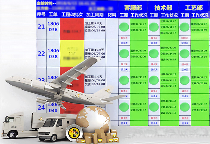 正一金屬科技為實現(xiàn)100%按期交付,自主開發(fā)交期監(jiān)管APP軟件,實時掌握訂單信息,智能遠(yuǎn)程生產(chǎn)、物流進(jìn)度及狀況監(jiān)控管理,結(jié)合成熟的物流管理體系,確保能在約定交期之前,完成產(chǎn)品交付。